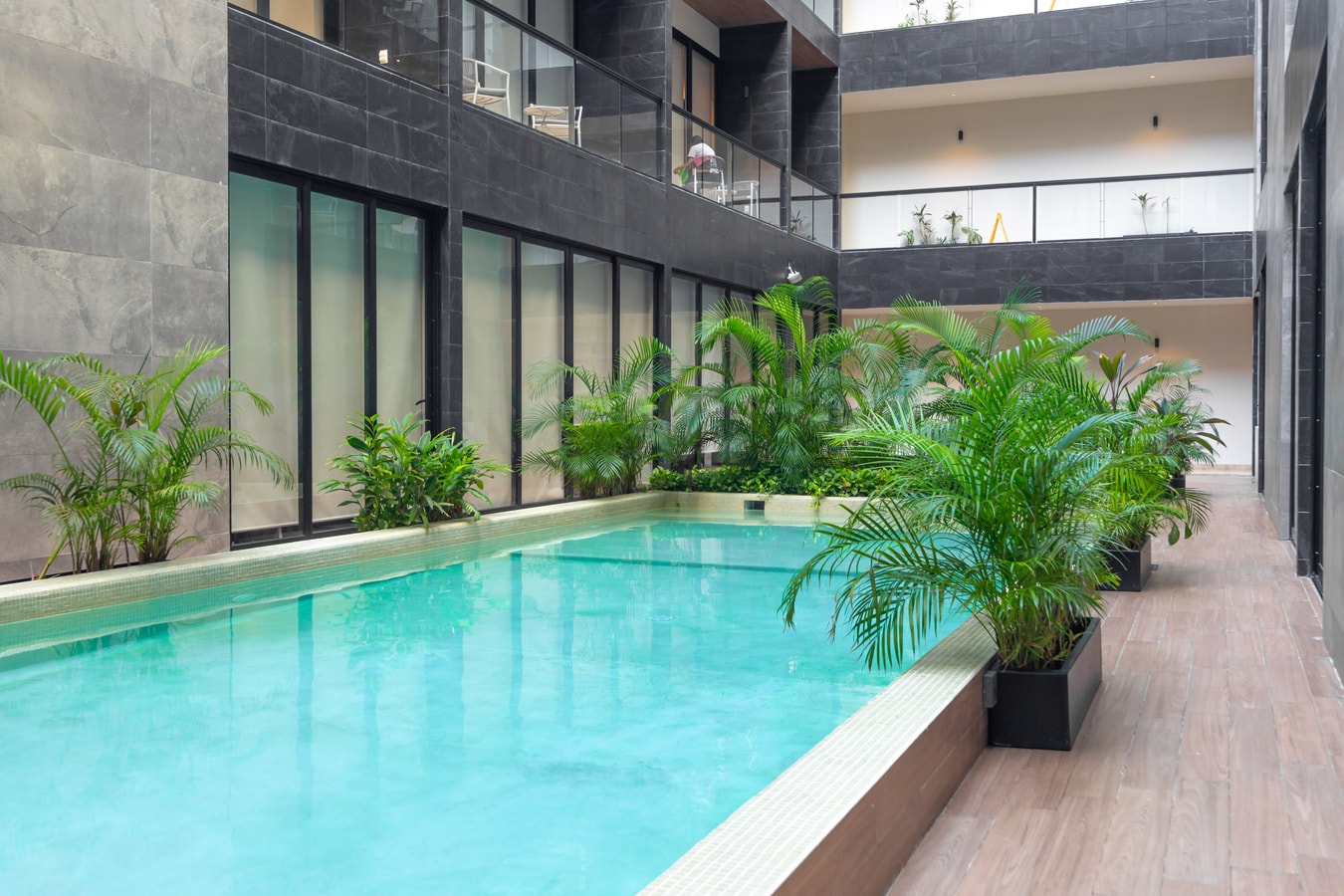 Experience luxury at Musa del Carmen! Located in the heart of Playa del Carmen, just steps from the famous 5th Avenue and Paseo del Carmen Shopping Mall. Enjoy a pool in the building’s atrium, a jacuzzi, and another pool with a gym on the rooftop. Our exclusive spaces are fully equipped and designed for your comfort. Includes parking and high-speed Wi-Fi. Your perfect getaway starts here, in the best location in town!
